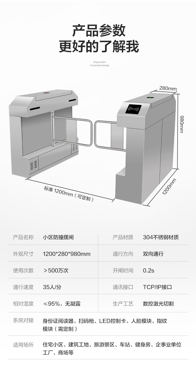 通行速度: ≤35人/分運(yùn)轉(zhuǎn)時(shí)噪音:≤ 70dB